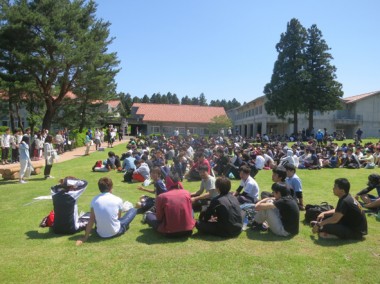 スポーツ及び文化系競技等を通じて、本学院と同じ東黒牧台地で “東黒牧研究学園むら” をなす富山国際大学の学生・教職員の皆さんとの交流を図る行事で、約450名が参加し、交流会を楽しみました。