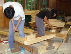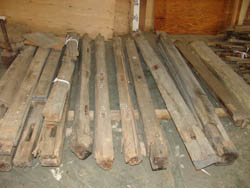 | 解体作業の様子 | 解体された部材 | 新しい部材の加工 |