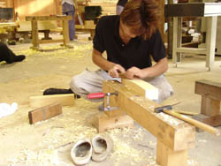 富山市下堀の下堀神社本殿の修復工事に、建築職藝科大工コース2年生(10期生)が取り組みました。