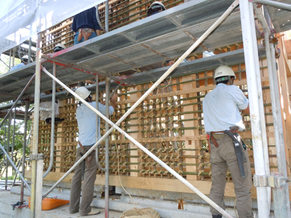 〇全学生(人と土の日):伝統左官工法「荒壁塗」