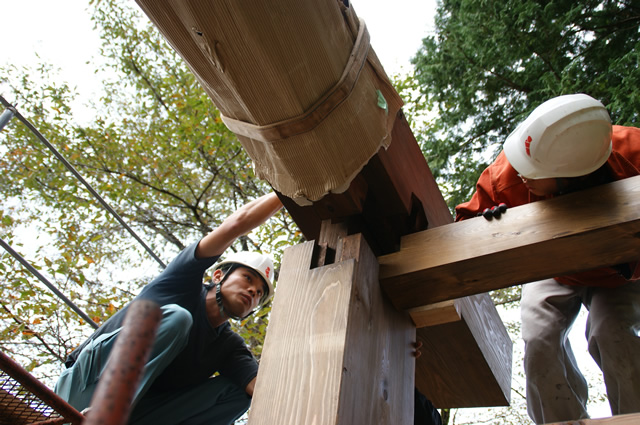 伝統的仕口・継手、木組みの墨付け・加工・組立などの技能と関連知識を習得します。そして実物実習教材を中心に木造建築軸組構法の木組みなどを実地に学びます。“実物実習”では住宅や公共施設のほか、神社・寺院などを教材とし、その施工や修復・再生などにも携わります。