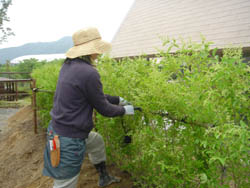 園藝・ガーデングコースの渡邉美保子講師は、早稲田大学ワボットハウス研究所(岐阜県各務原市テクノプラザ内)にあるセラミックリサイクルハウスの前庭の設計と施工の依頼を受け、5月の中旬、および6月中旬の二度に渡り、岐阜の造園業者さんとともに植栽工事を行いました。