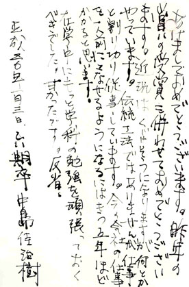 棟梁方のいつまでものご健康と、学院の益々の繁栄を心よりお祈り申し上げます。いつかそちらにも顔を出そうかと思います。卒業生ならびに在校生によろしくお伝え下さい。乱文失礼致しました。